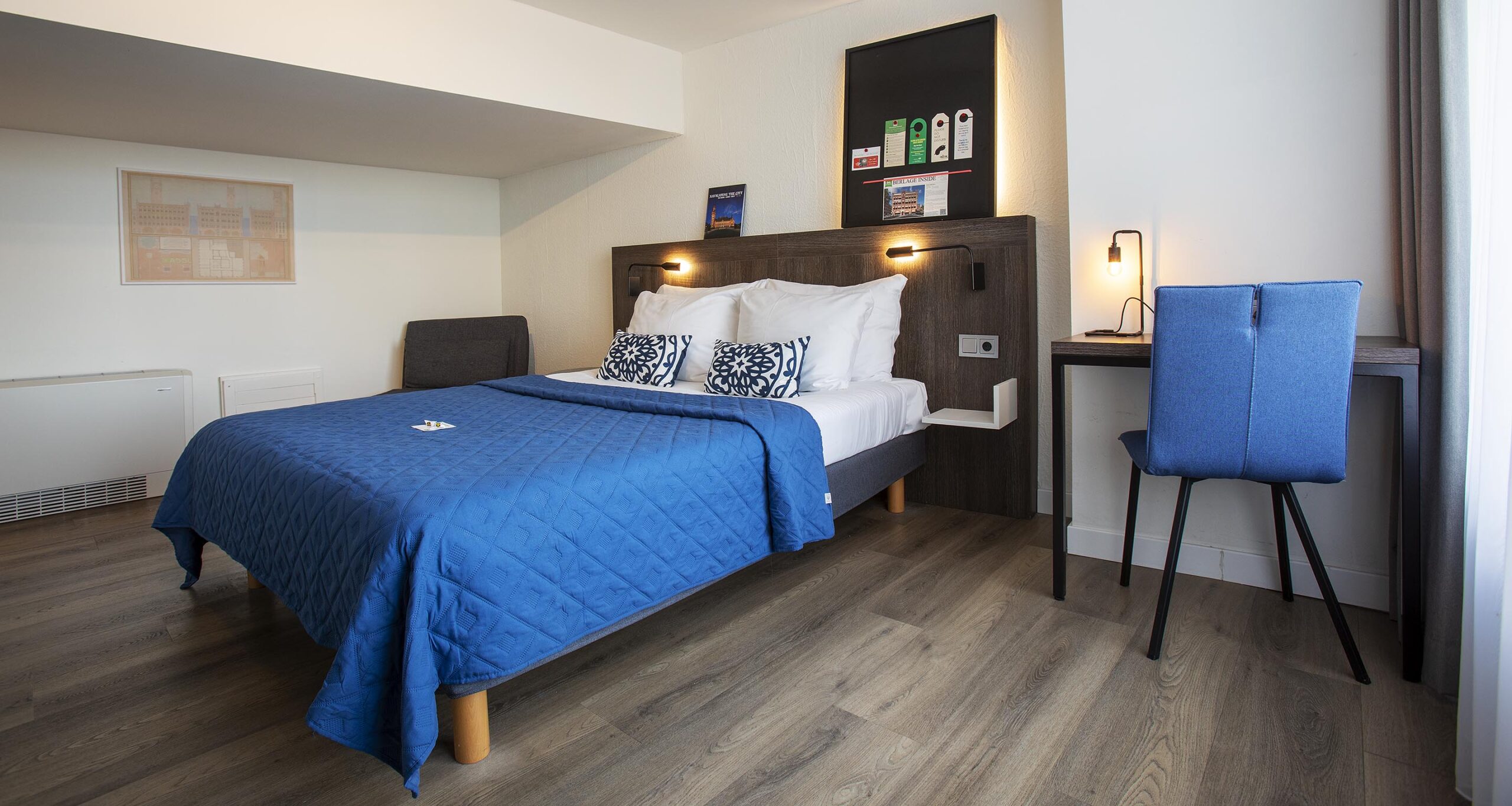 Ontsnap aan de drukte van de dag en kom volledig tot rust in onze elegante tweepersoonskamer in het Berlage Hotel Den Haag.